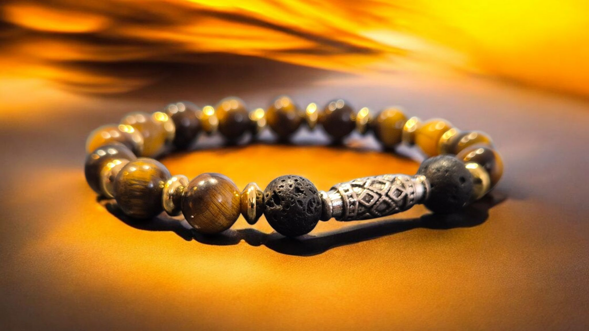 Bracciale del Guerriero - Bracciale diffusore in Pietra Lavica e Occhio di Tigre